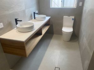 As plumbers we get to be a part of a lot of different bathroom renovations, but some stand out more than others. This wonderful bathroom makeover in Duncraig was certainly one of those. The warmth of the wooden bench-tops and cabinetry, combined with the glossy tiles and matte black tap fittings has resulted in a very sophisticated and stylish bathroom