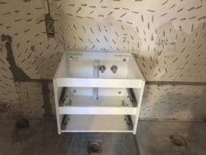 Before starting this ensuite renovation, the owners had spoken to several plumbers who said they would need to cut the floor to supply water and drainage to the new design situated in the middle of the house.